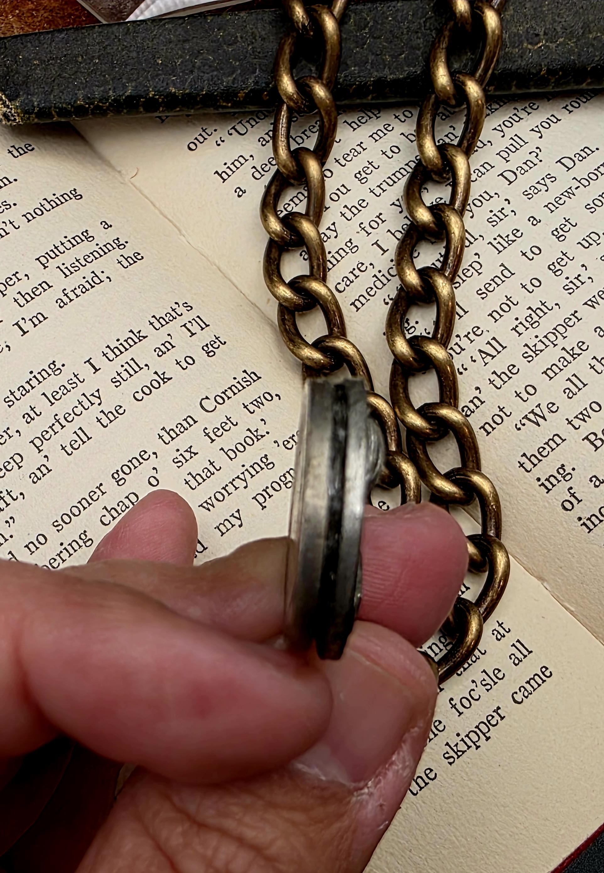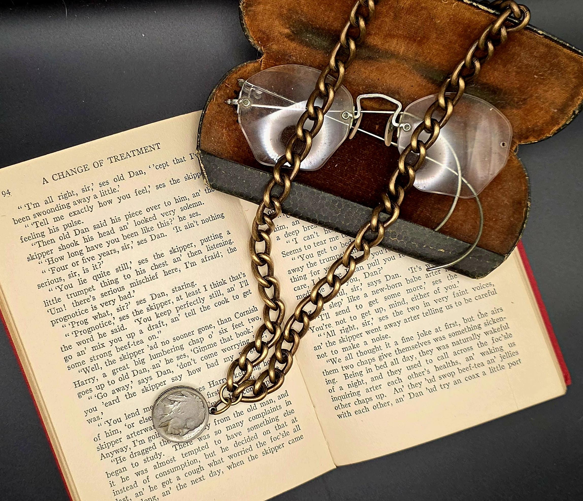 18" Jeweled Indian Nickel Coin Necklace on chunky hand tarnished brass chain