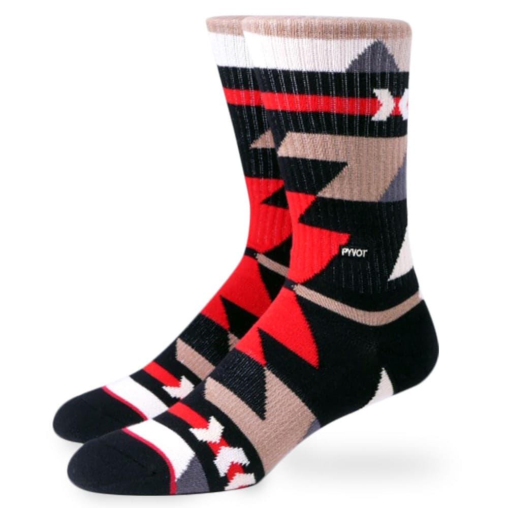 Peaks, valleys, and river, we call it Arrow. Red-hued combed cotton socks, designed with a distinctive southwest motif. These socks offer unparalleled softness and breathability, coupled with reinforced heel and toe for ultimate durability and comfort.